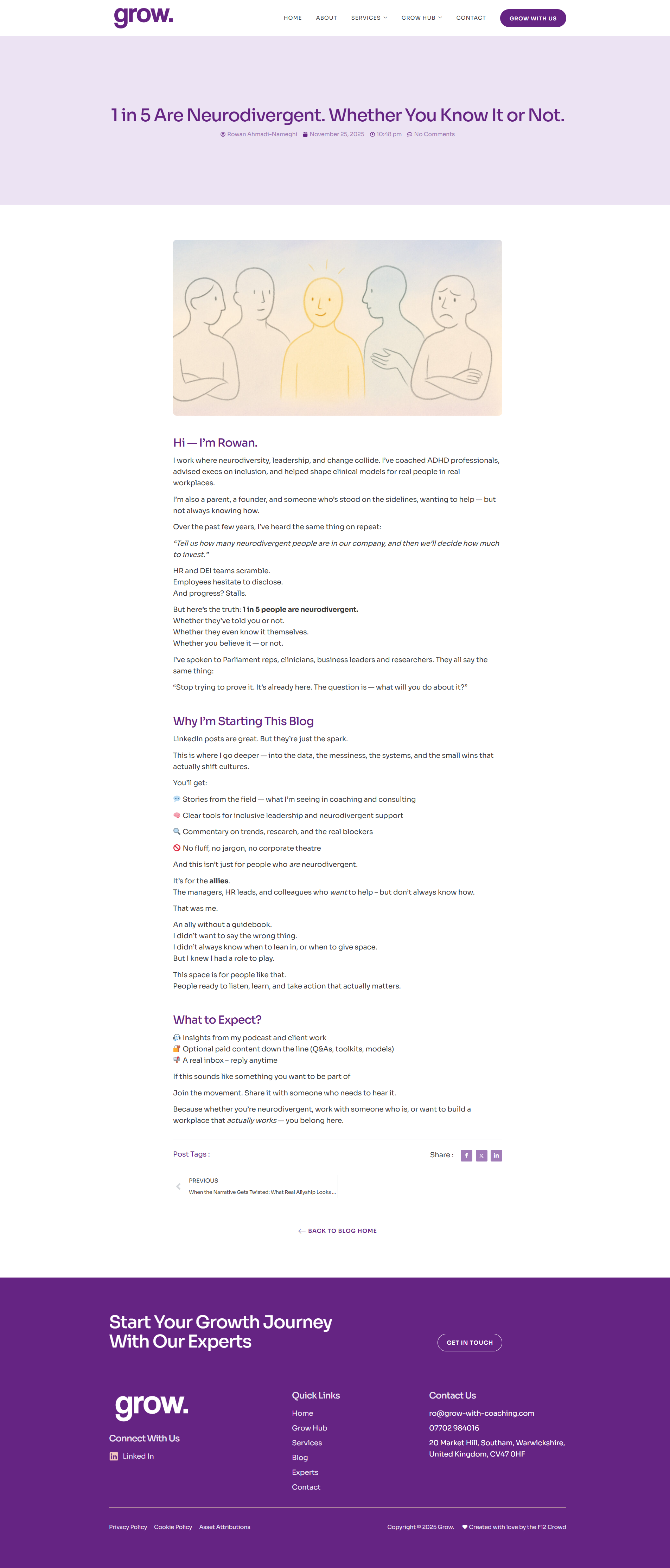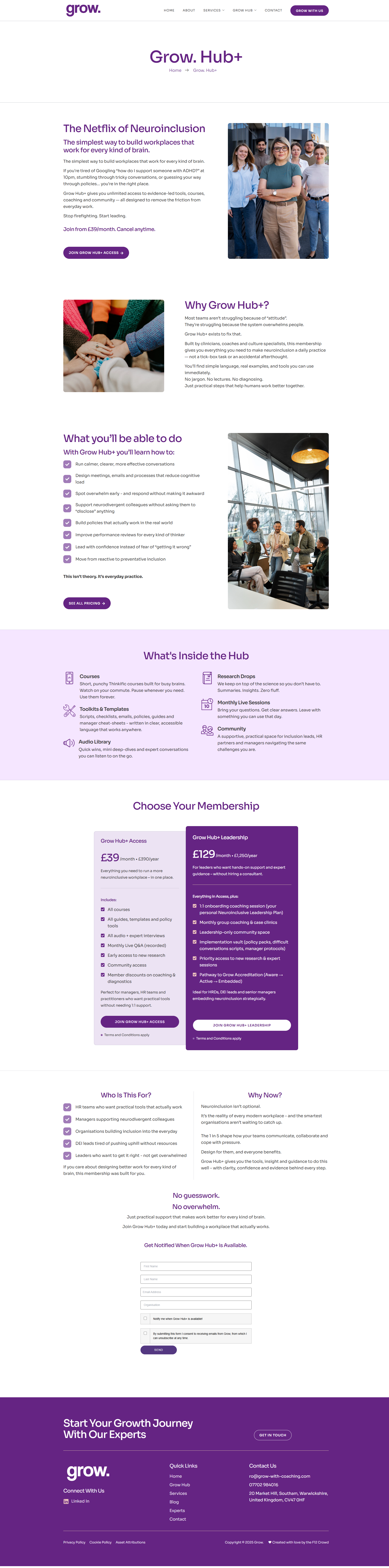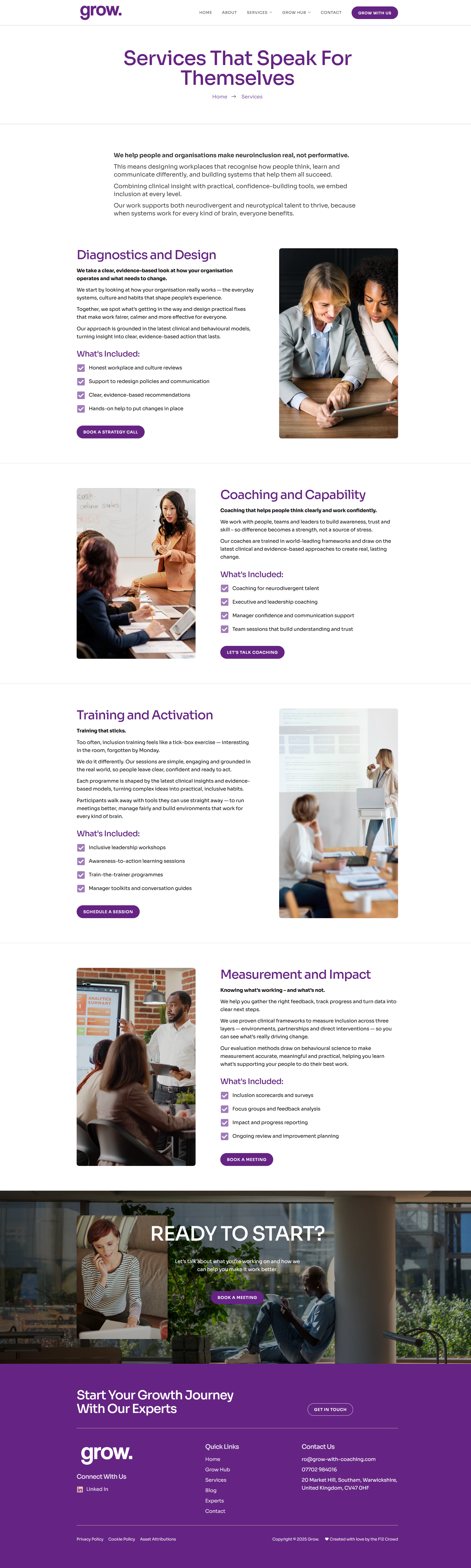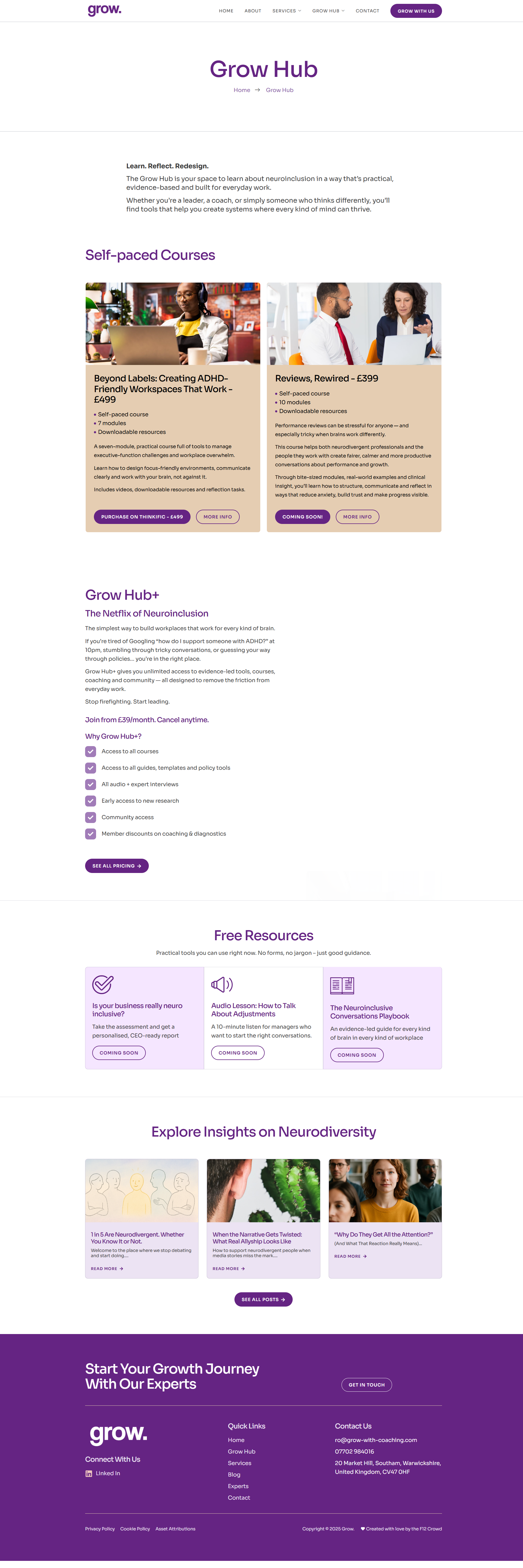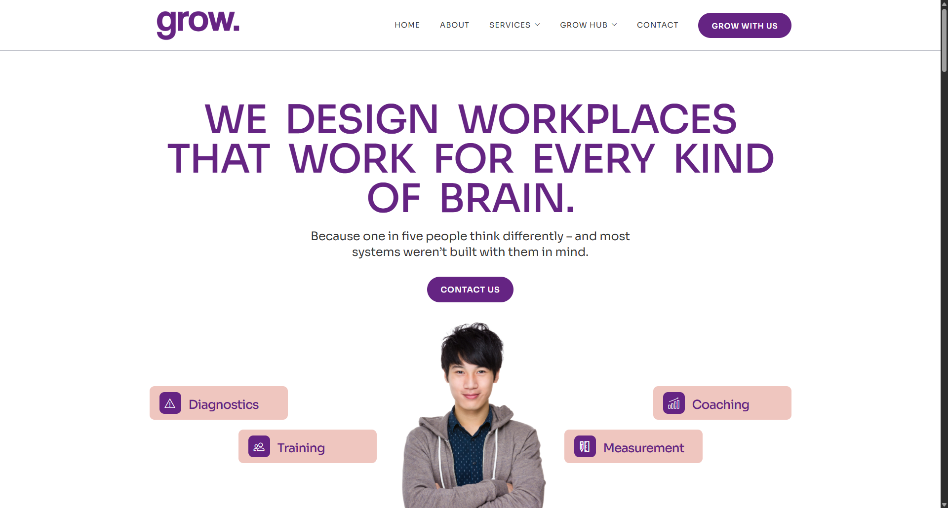 Grow is a neuroinclusion consultancy dedicated to designing workplaces that cater to “every kind of brain,” specifically supporting the one in five people who think differently. They provide science-backed services—including diagnostics, training, coaching, and measurement—to help organizations move beyond good intentions and implement practical, inclusive changes for their employees and leadership.